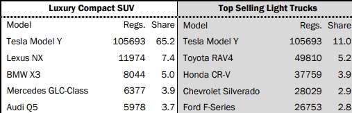 According to the latest figures published in the California New Car Dealers Association (CNCDA), the Model Y has seen 105,693 registrations from January to September, significantly outpacing competitors like the Toyota RAV4 (49,810 registrations) and the Honda CR-V (37,759 registrations) in the light truck category.