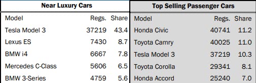 The Model 3 meanwhile is also significantly ahead of its competitors in the ‘near luxury cars’ segment, with 37,219 registrations year-to-date, enough for a 43.4% market share in that segment. When it comes to overall sales in the passenger car segment, the Model 3 sits third, less than 3,000 registrations behind the Toyota Camry (40,025) and Honda Civic (40,741). The Model 3 is also the second best-selling EV through September.