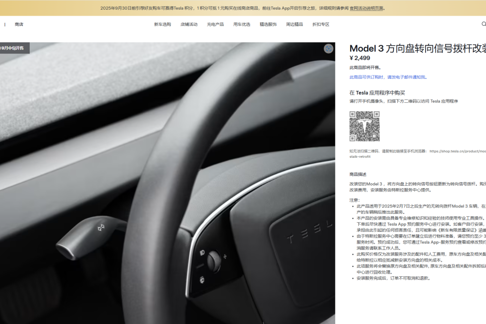Tesla launches turn signal stalk retrofit for Model 3 in China