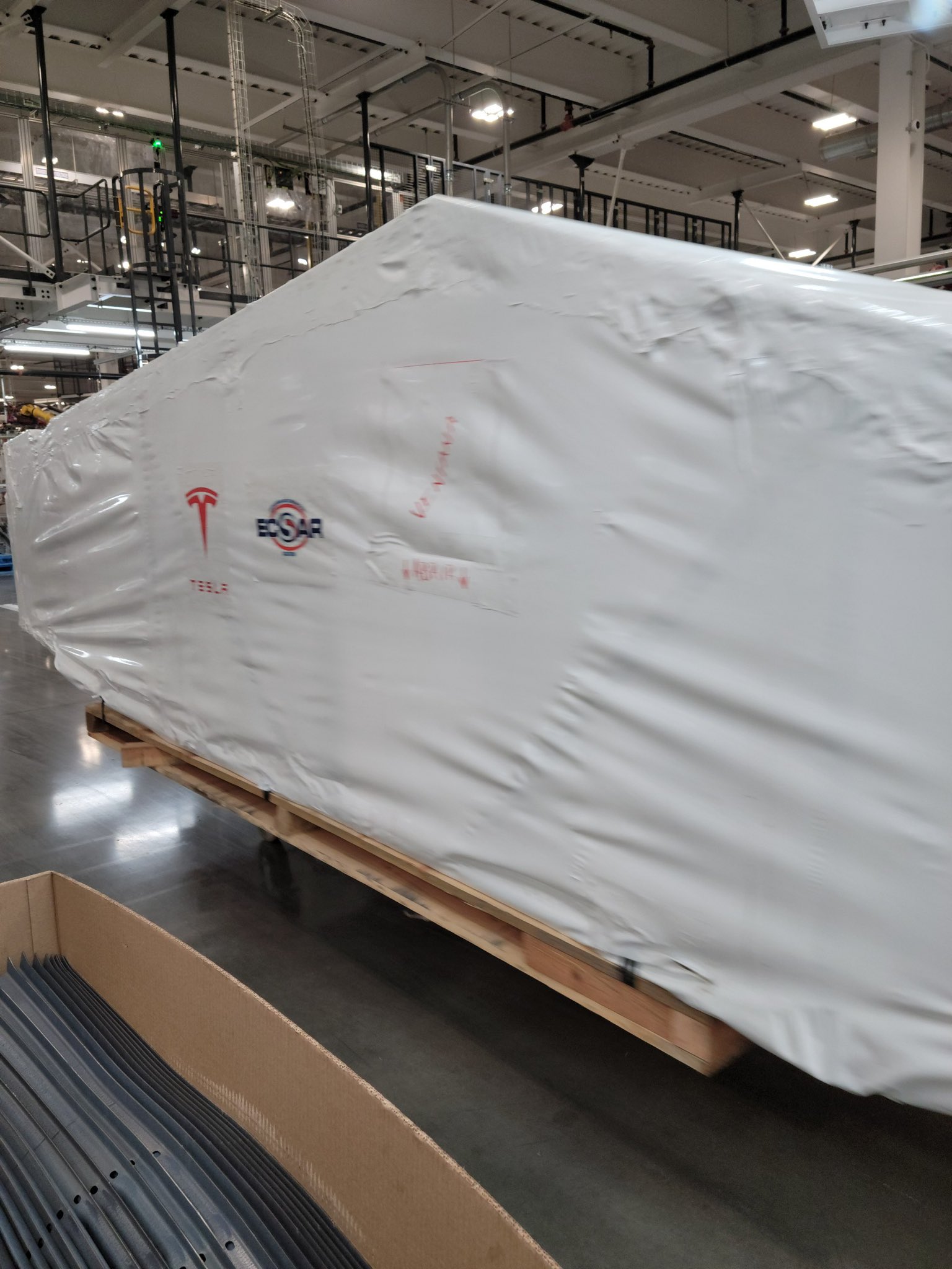 The latest pictures gives us a closer look at the plastic wrapping, revealing the logo of a company called Ecsar. According to their website Ecsar is an engineering solutions and construction company based in Novi, Michigan.,