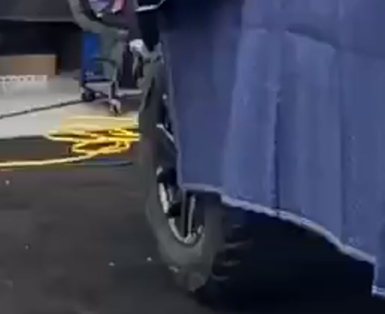 It turns out that by posting that video, Musk also revealed the naked Cybertruck wheels. While we don’t get a perfect view of them, we can see the front wheel which is partially blocked by the blanket, as well as a spare wheel on the floor behind Franz in the background. (click to enlarge images)