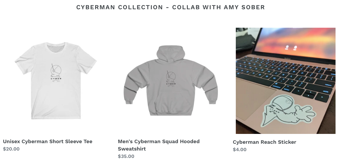 They also just released a new collection of clothing and stickers of “Cyberman”, in collaboration with Amy Sober.