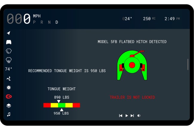 With the amount of hi-tech software in Tesla vehicles, Burns is hoping the Cyber Hitch will be implemented with smart sensors that the driver can access on the Cybertruck’s display. He has already created some mockups, showing the tongue weight, if the trailer is locked in position, and other important information to know before and during towing.
