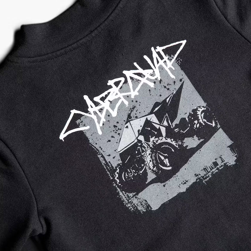 The bomber jacket features a graffiti-style illustration of our Cyberquad silhouette and wordmark. With three zippered pockets and our signature T logo and Tesla wordmark printed along the sleeves, Kids Cyberquad Bomber Jacket is perfect for wherever the trail takes you.