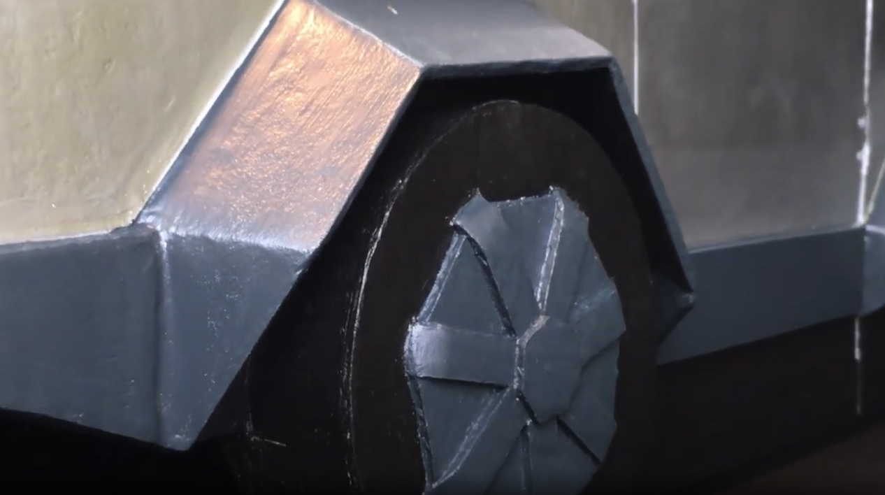 Speaking with Drive Tesla, Mark said the carboard costume was built in his spare time on evenings and weekends, and took about a month to create.