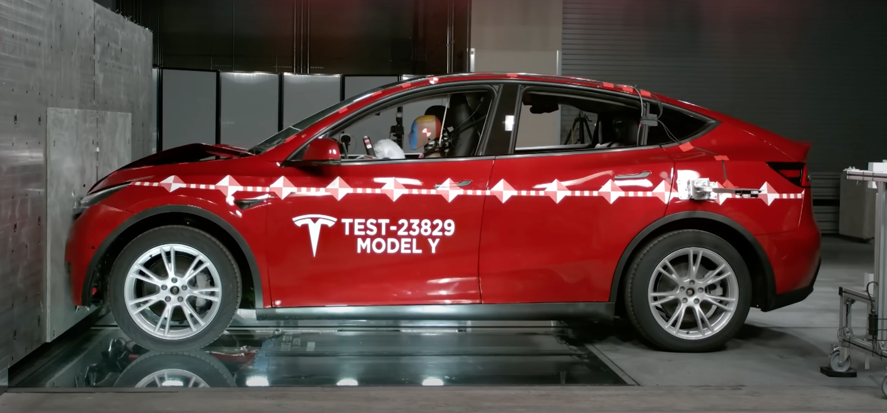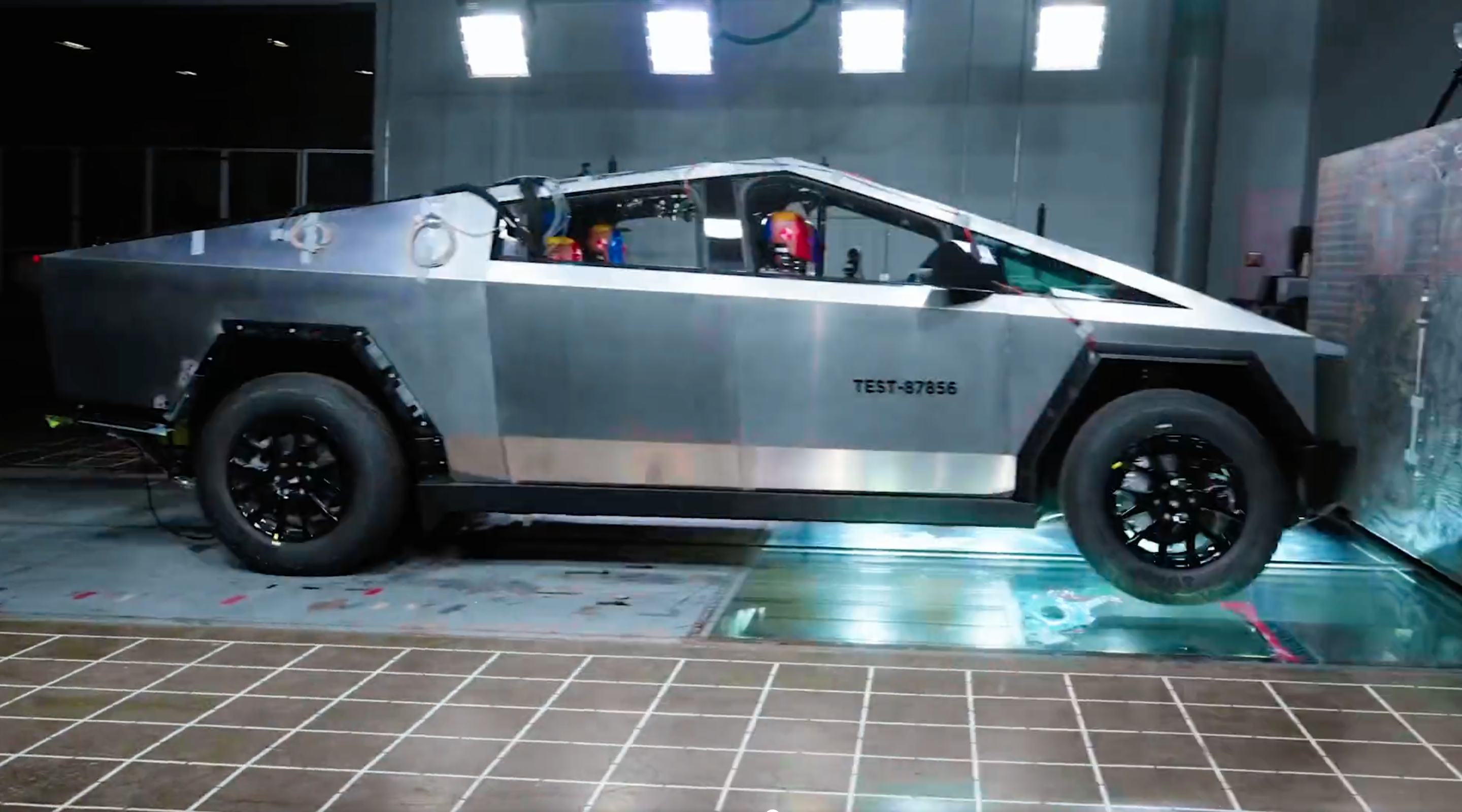 We have seen inside Tesla’s Crash Lab before, and while this Cybertruck does have the “TEST-87856” decals, it is missing the vehicle name, Tesla ‘T’ logo, and key markings down the side that have been on all previous crash tests, like on this Model Y and Model X from Tesla’s Crash Lab video.