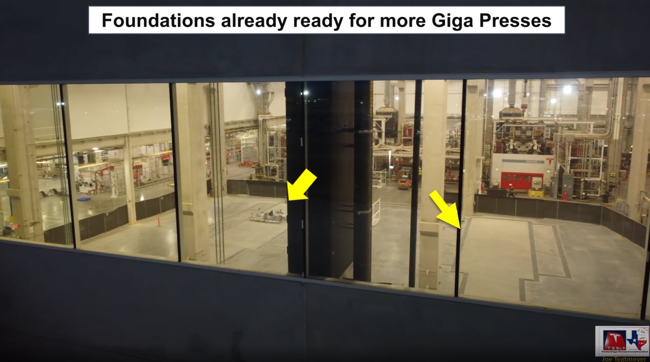 A recent drone flyover also revealed foundations have already been prepared for two additional Giga Presses.