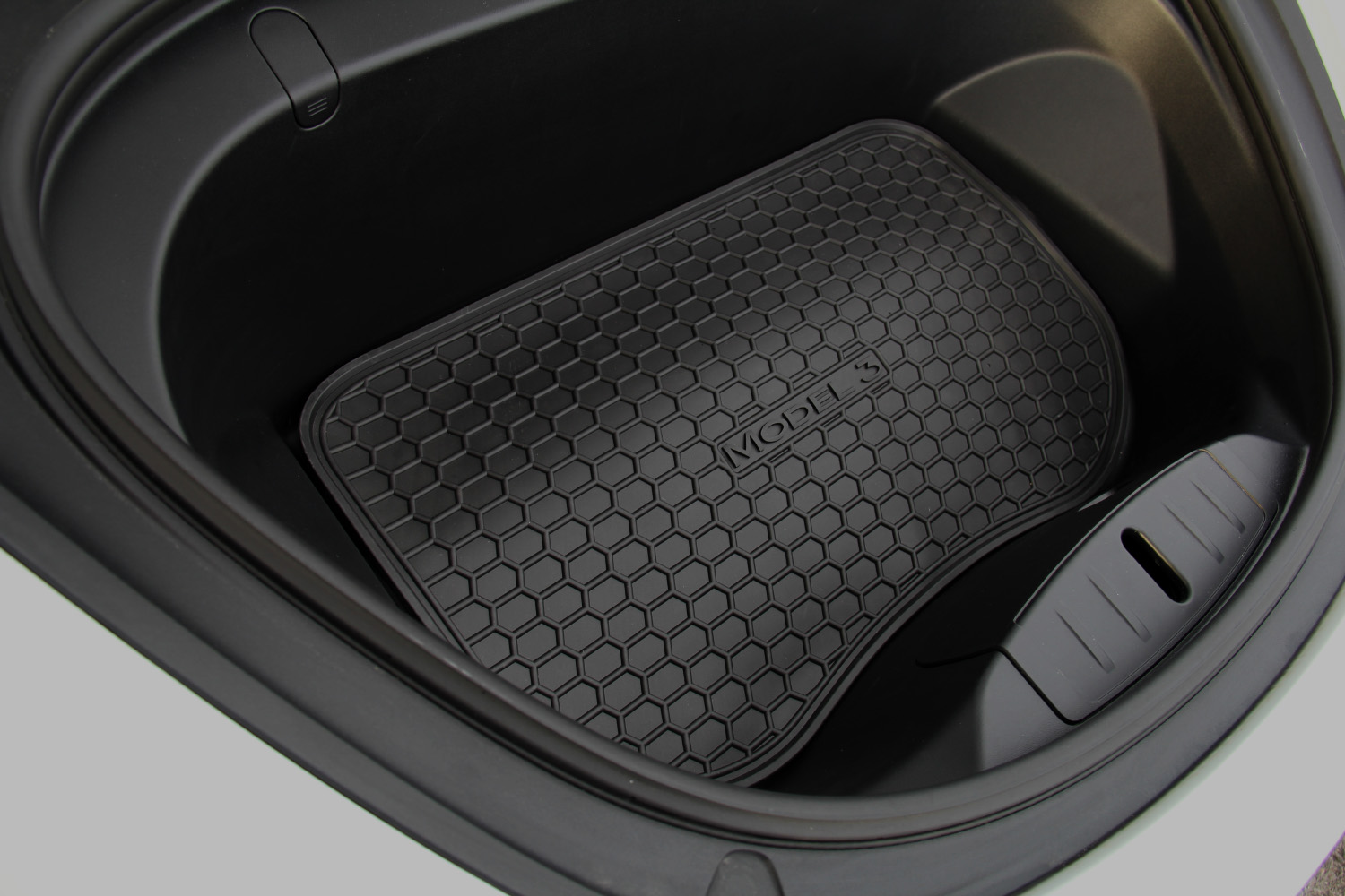The frunk and trunk mats also includes a mat for the lower storage area in the trunk, something you don’t see very often.
