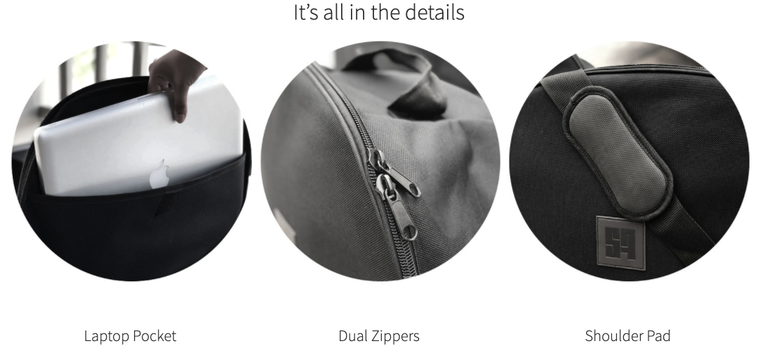 The bags have dual zippers and are easy to carry as they come with both a hand strap and a removable padded shoulder strap. Each bag also includes a handy laptop sleeve.