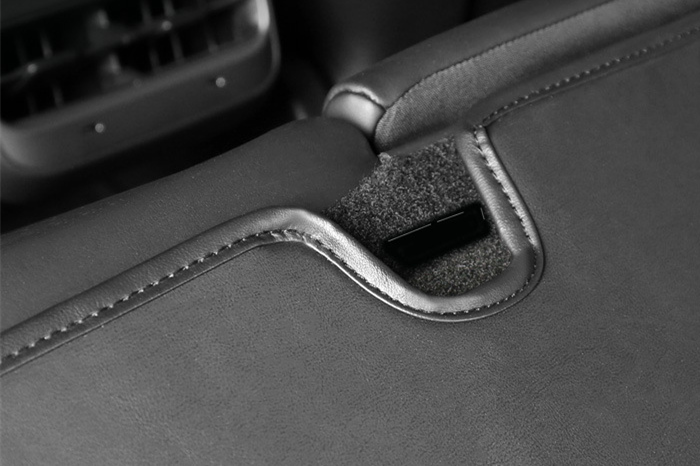 The Tesla Model 3 seat back covers are made from vinyl leather, making them waterproof and easy to clean with a wet microfiber towel.