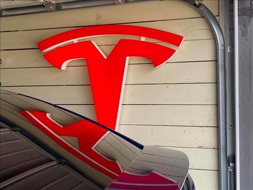 A common accessory for that Tesla garage is a placing a Tesla logo on the wall, either painted on or applied as a vinyl sticker.