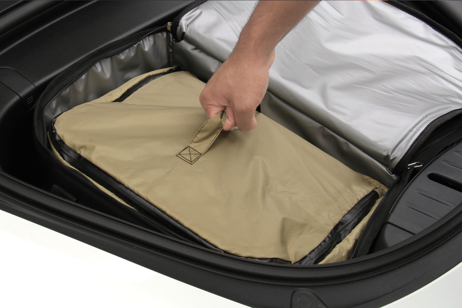 Specifically designed for the Model 3 frunk, this cooler bag will keep your food and drinks fresh for hours with its thermal insulation. One side is designed for hot or cold perishable food or drink, while the other is a ‘pantry’ side for everything else. The pantry side also comes with convenient, removable dividers to keep your items neatly organized.