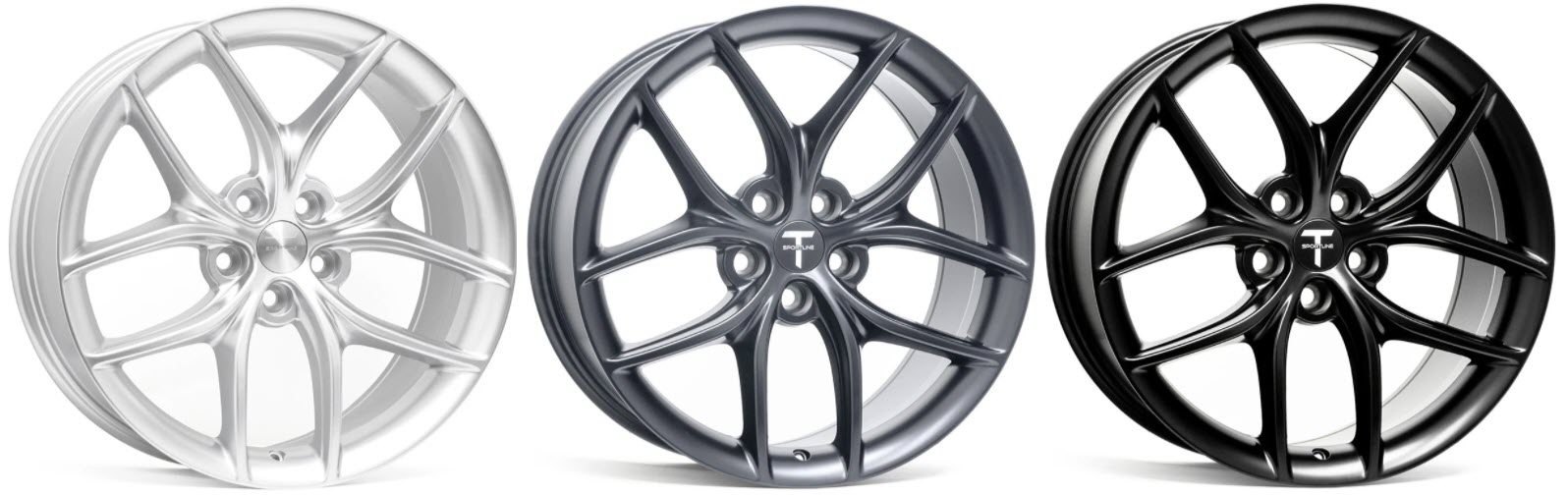 The TS5 wheels from TSportline are much cheaper, starting at $1,340 USD ($1,780 CAD) for the 18″ versions, up to $2,060 USD ($2,736 CAD) for the larger 20″ wheels. They come in three different colours – Cyber Silver, Satin Grey, and Matte Black.
