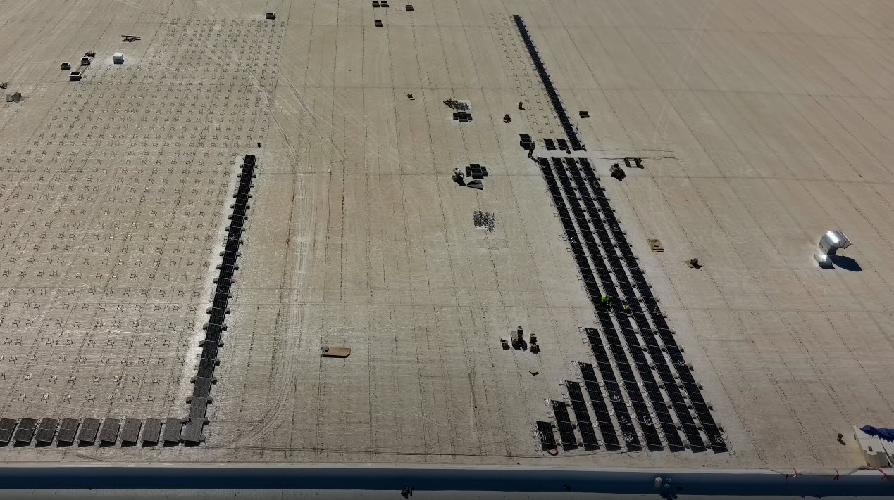 Drone operator Joe Tegtmeyer attempted to visualize what the final product might look like, but in reverse since the letters will be visible from the negative space between the panels (i.e., black will be empty space, white will be solar panels).