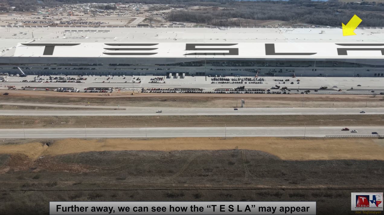 Drone operators Joe Tegtmeyer and Jeff Roberts both captured footage this weekend showing the panels are being installed to spell out the word T E S L A on the rooftop.