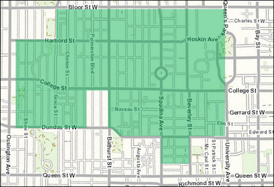 - The customer’s Home must be located in the Spadina and College area, generally understood to be the area between Bloor Street West, Roxton Road, Dundas Street West, and University Avenue in Toronto, Ontario;