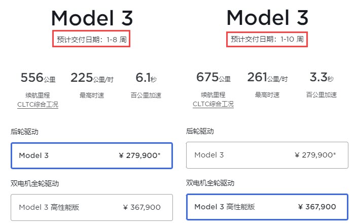 For buyers of the entry-level RWD Model 3, Tesla China now offers a wait time between one and eight weeks, significantly down from six to ten weeks previously.