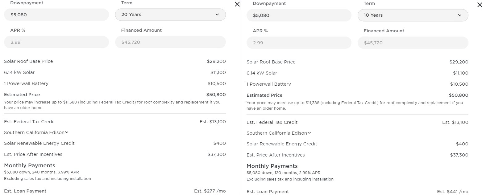 In an update to the Tesla Energy website this morning, customers can again select from a 20-year loan option, this time on the purchase of a Solar Roof.