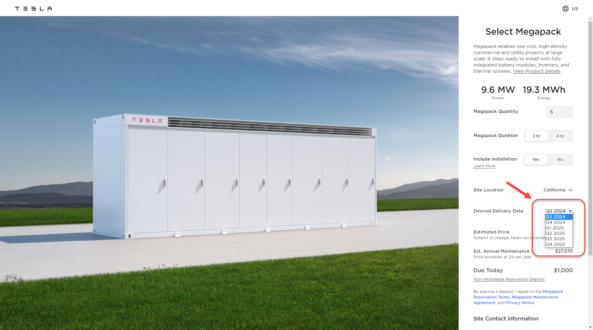 According to Tesla’s website, orders placed today for any number of Megapack batteries will not be delivered until at least Q3 2024. (h/t: CPAinNYC)