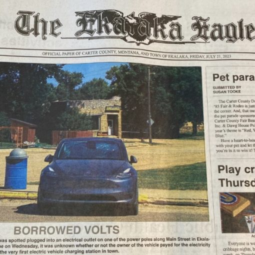 Charging Tesla causes sensation in small Montana Town; appears on newspaper front page