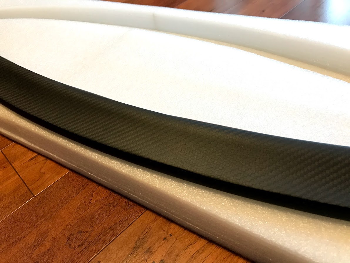 The spoiler itself is well packaged to avoid damage during transit, coming in a large box and surrounded with foam packaging. Once unboxed, you can get a closer look at the quality, and the real carbon fibre weaves looks like it came from the Tesla factory.