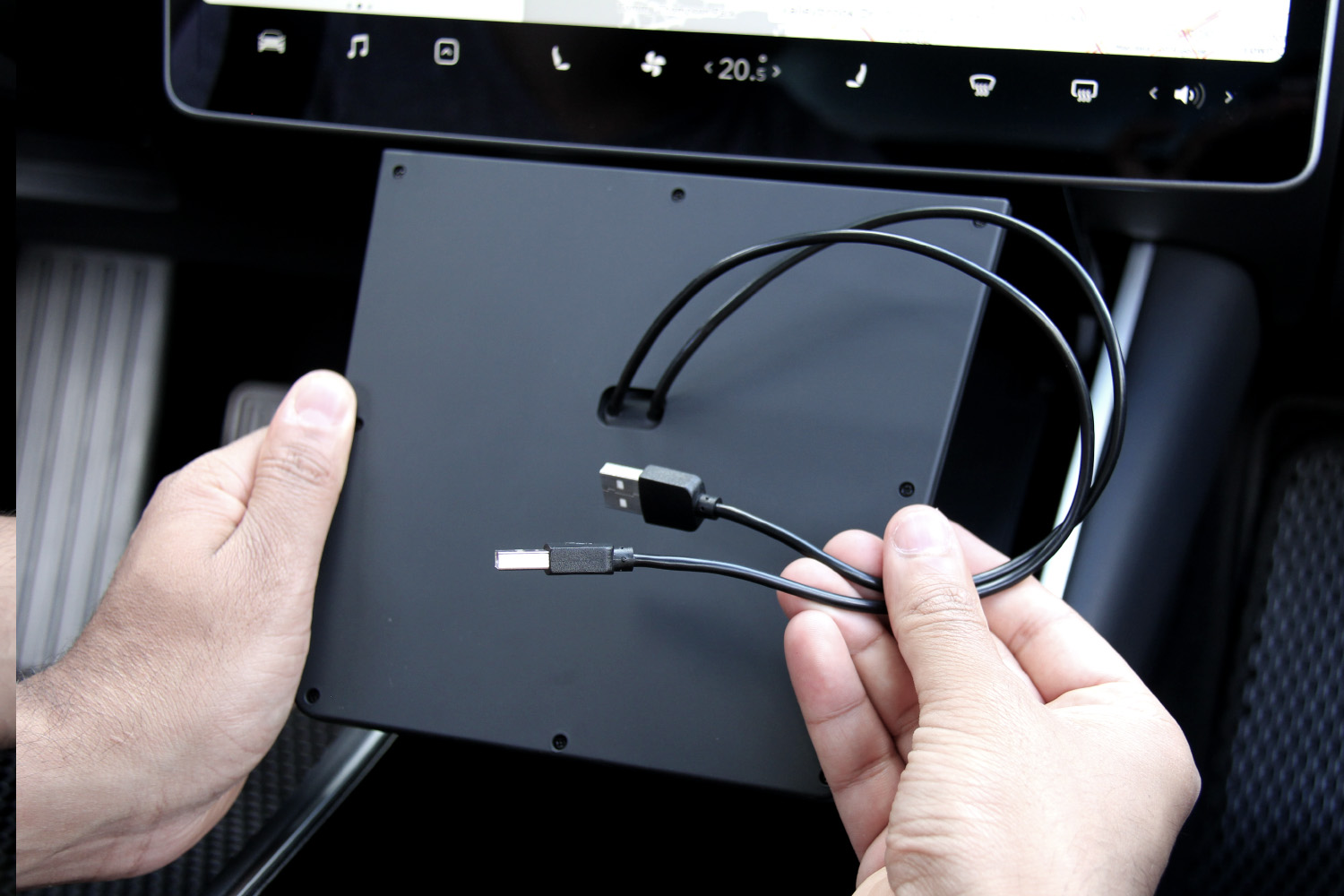 Included with the charger is a USB Y splitter cable so you don’t lose the USB port for a USB storage device so you can take advantage of TeslaCam, Sentry Mode, or music.
