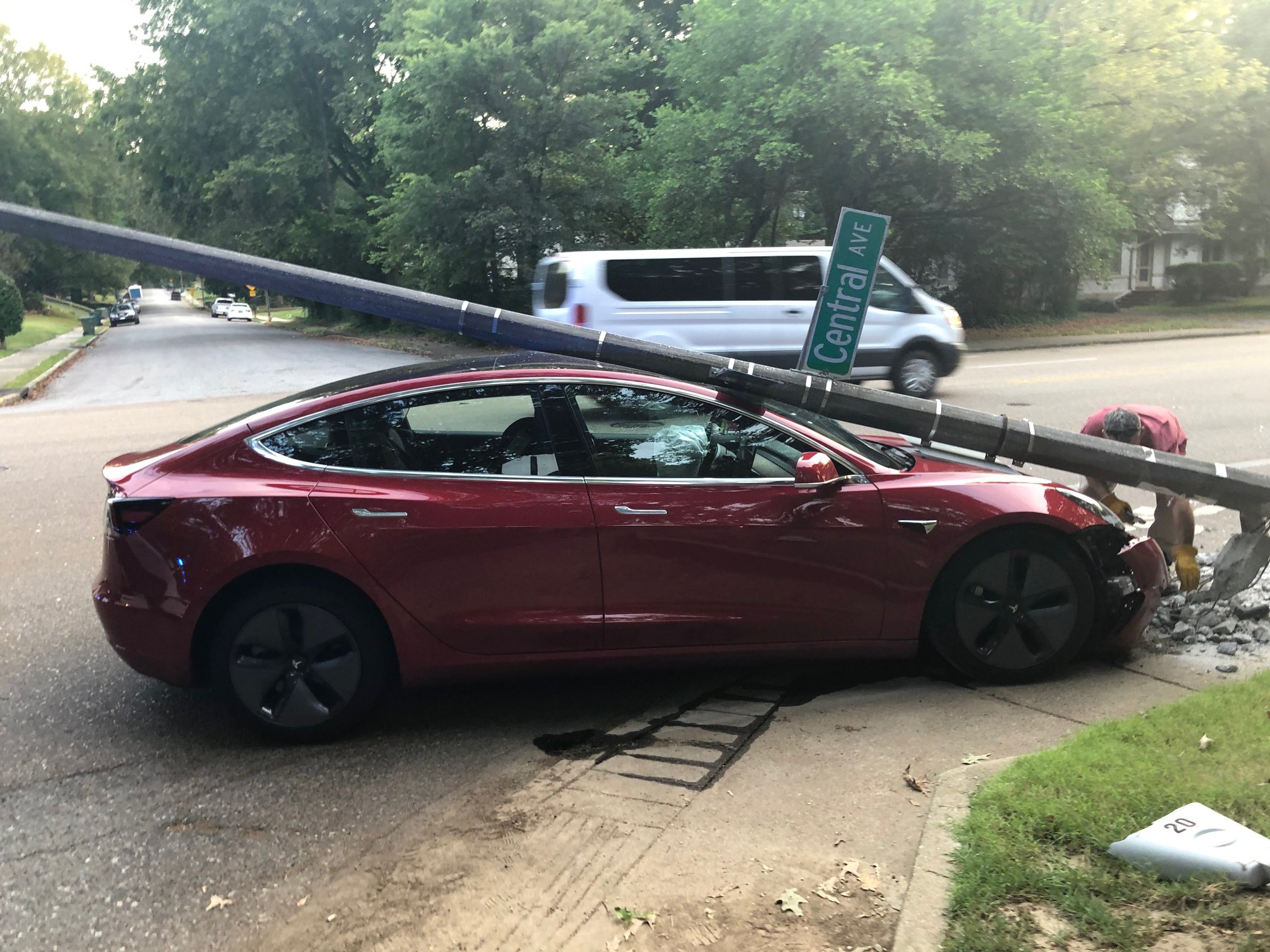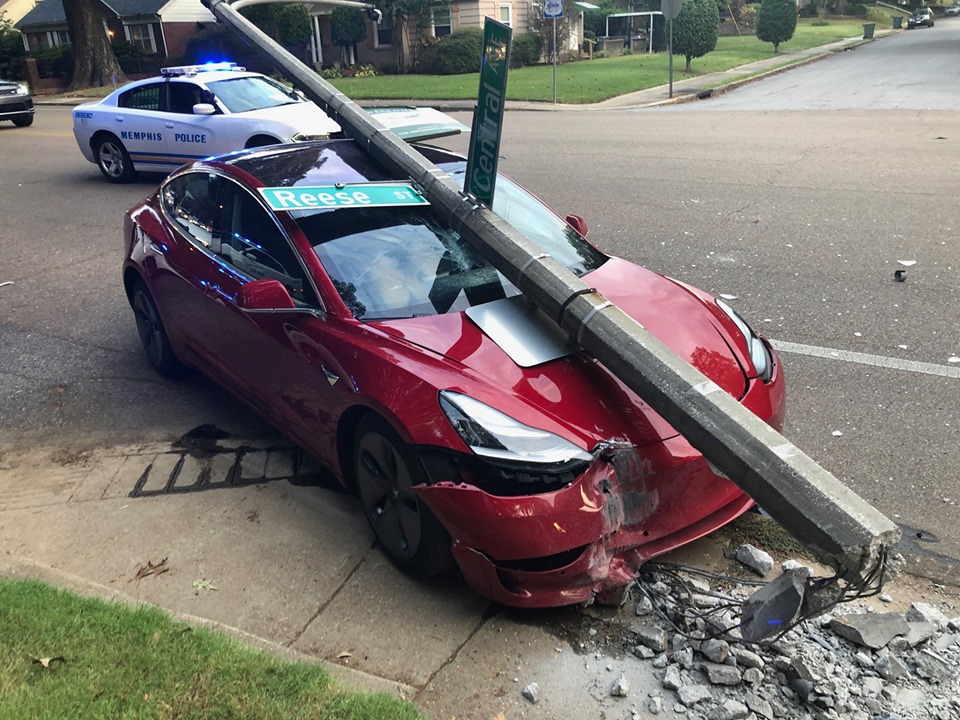 New evidence of this comes in the form of an unfortunate car accident in Memphis where a red Model 3 slams into a concrete utility pole, before the pole crashes down on the roof of the car, protecting both the driver and his 2 year-old daughter in the back seat of the car.