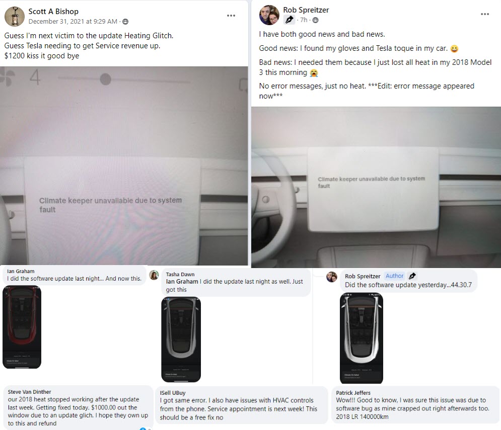 Multiple owners reported their heating systems failed just after receiving the Holiday Software Update (2021.44.25.2) in late December.