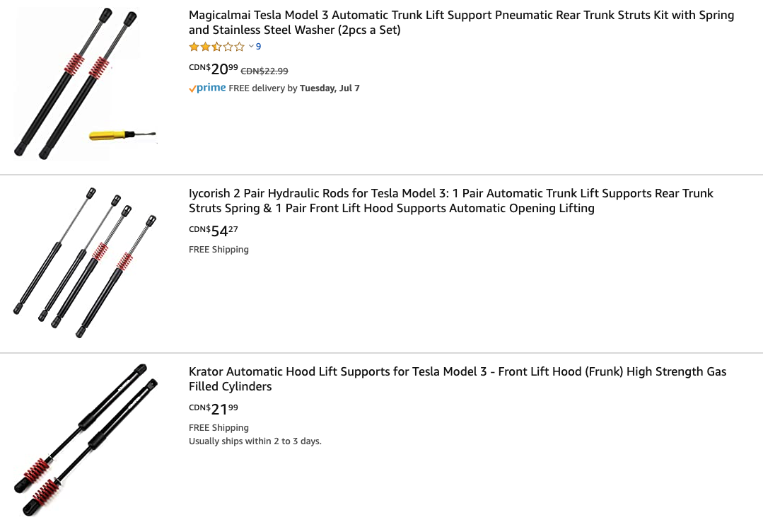 These automatic trunk struts can be bought off Amazon for a fairly cheap price, ranging between $20-$40. Vincent, a Model 3 owner in Vancouver tells Drive Tesla he bought automatic struts from Amazon and installed them in his trunk in October 2019.