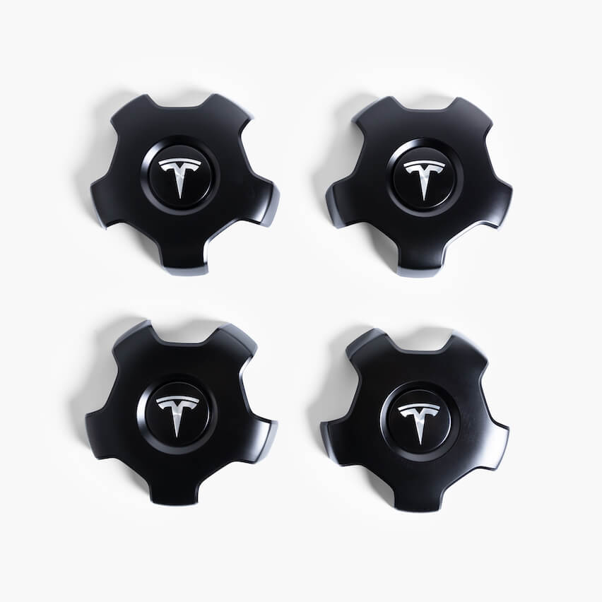 Tesla has added a new Aero Wheel Cap Kit that closely resembles the wheel cap kit for the 19″ Sport wheels. Described as an “eye-catching and sporty option,” it covers all four lugnuts with a matte black cap.