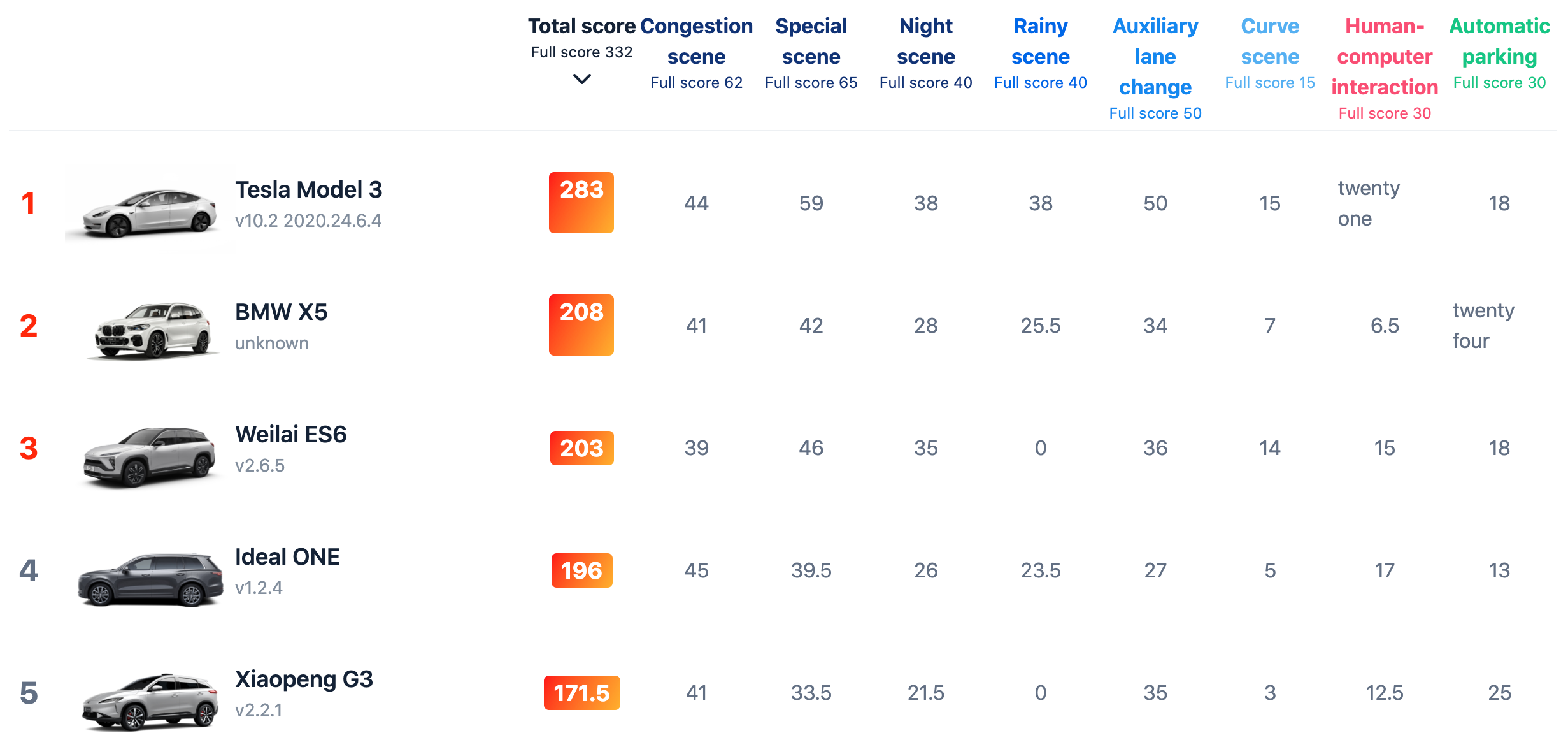 A total of eleven different cars were tested by 42HOW, including a Model 3 equipped with HW3.0 and Tesla’s Full Self-Driving (FSD) software.