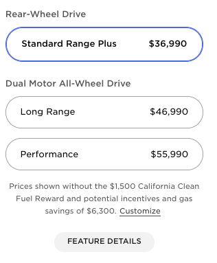Perhaps the biggest change to Tesla’s website happened late last night when they removed the Standard Range Model Y from the Design Studio. At the same time the Long Range Model Y in the US saw a $1,000 price drop to $48,990 USD.