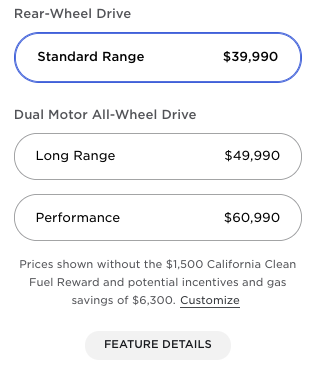 Model 3 Price Change