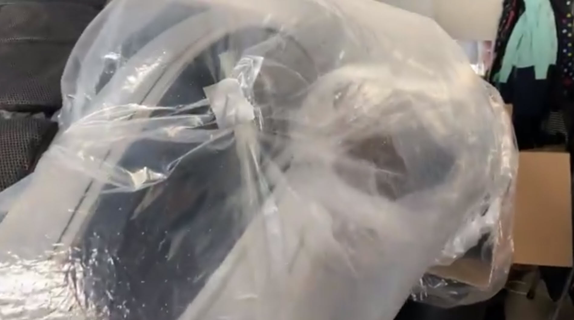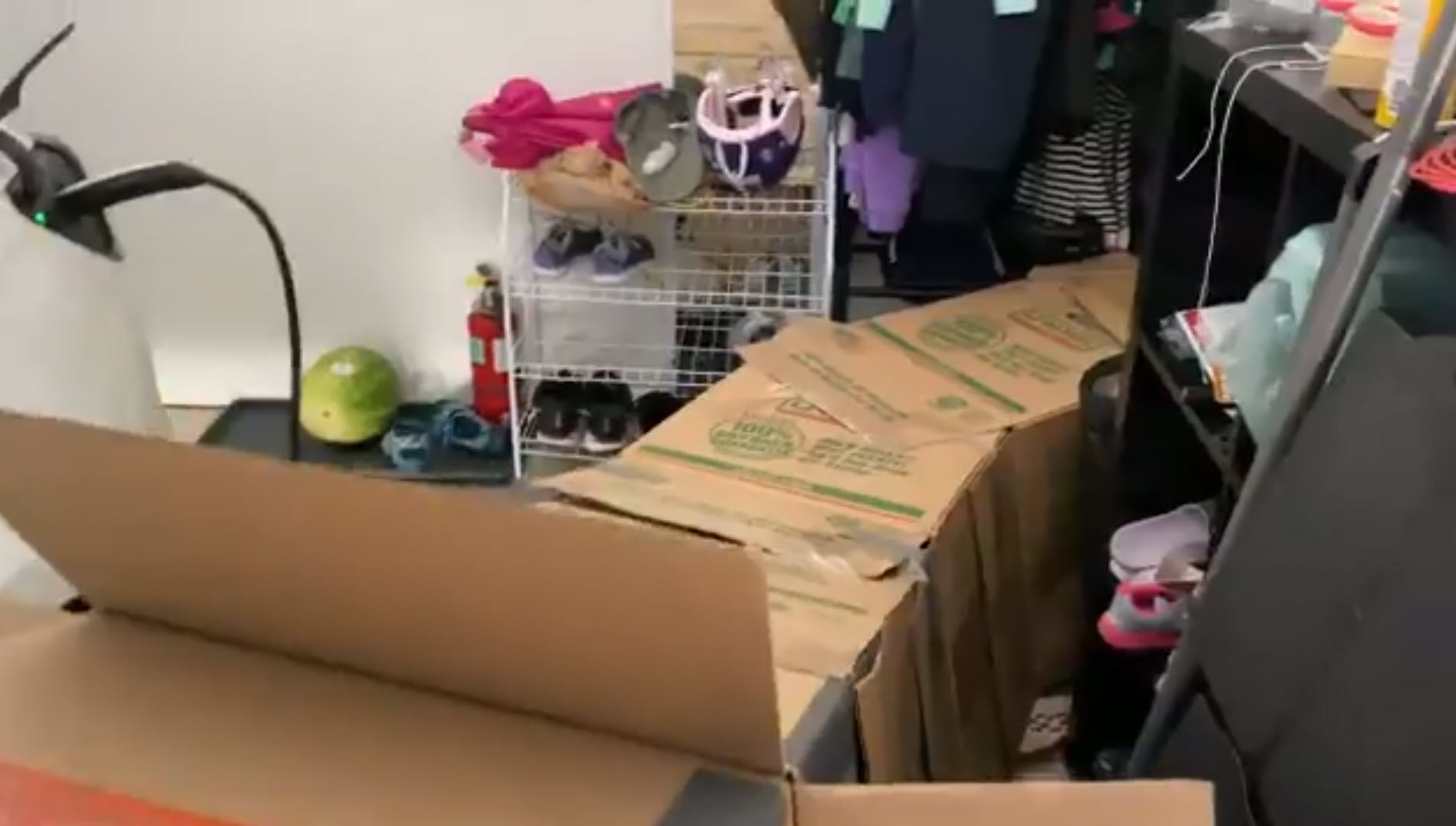 Armed with several cardboard boxes and plastic bags, he fashioned a duct that ran from the driver side window into his house. With the help of some portable box fans, the cool air from the Tesla made its way into his house.