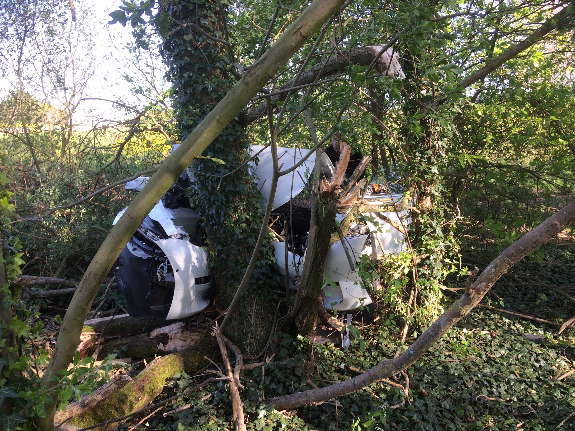 He was miraculously able to walk away from the accident, with the only injuries being some scratches as a result of a branch going through the front windshield.