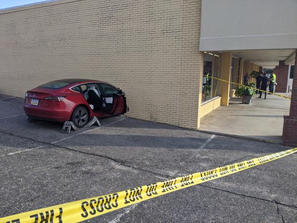 Fortunately the driver and no one inside the store were injured in the accident, but the Model 3 left a large hole in the building, which has since been covered with plywood.
