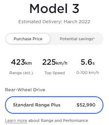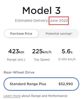 According to the online Design Studio, orders for the Standard Range Plus (SR+) Model 3 are not expected to arrive until June 2022, a full 9 months into the future.
