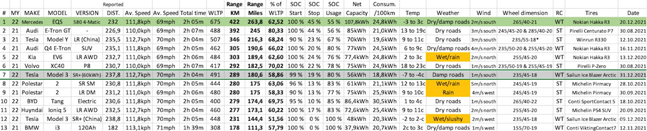 Making it even more impressive, the Model 3 was also driven in the coldest conditions compared to all the other tests. (click to enlarge)