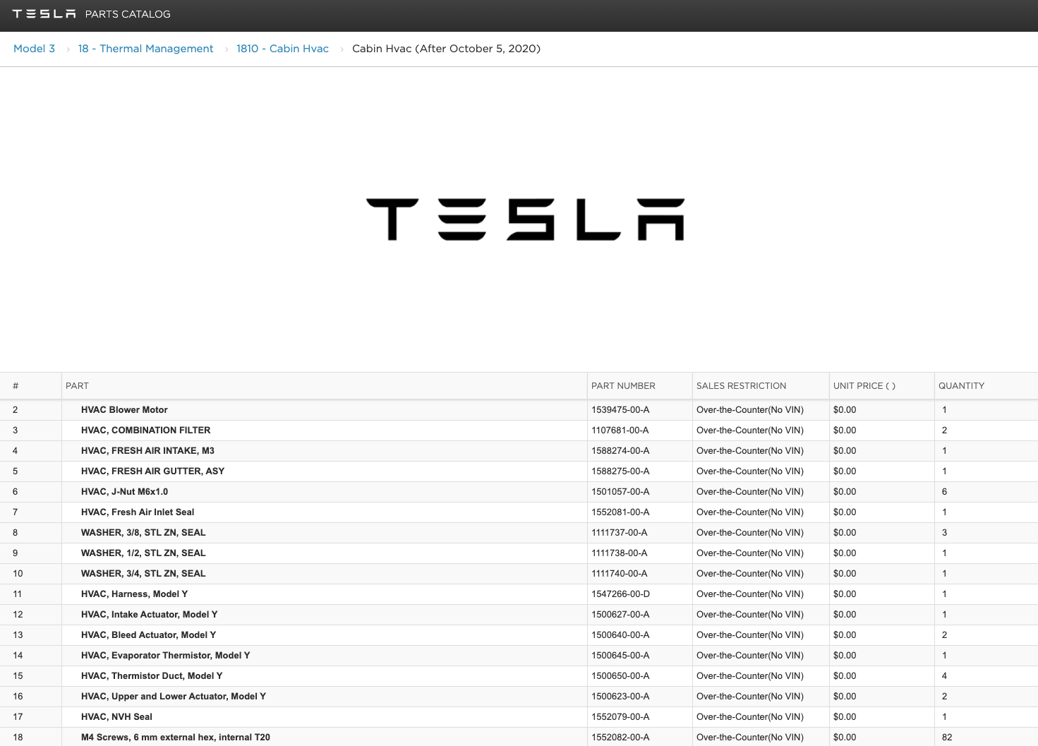 Now Tesla has re-added the Cabin Hvac (After October 5, 2020) section to its website, and it shares a number of parts with the Model Y.