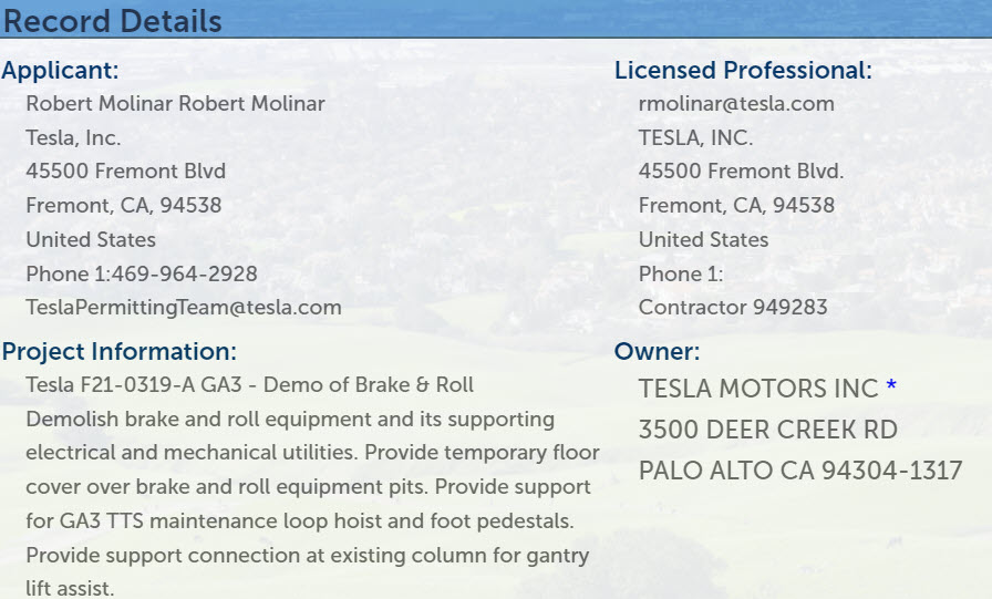 The other permit indicates Tesla wants to “demolish brake and roll equipment and its supporting electrical and mechanical utilities.” At the same time the company will provide a temporary floor cover over where the equipment used to sit. This permit was given a higher value of $75,000, which was first uncovered by Teslarati.