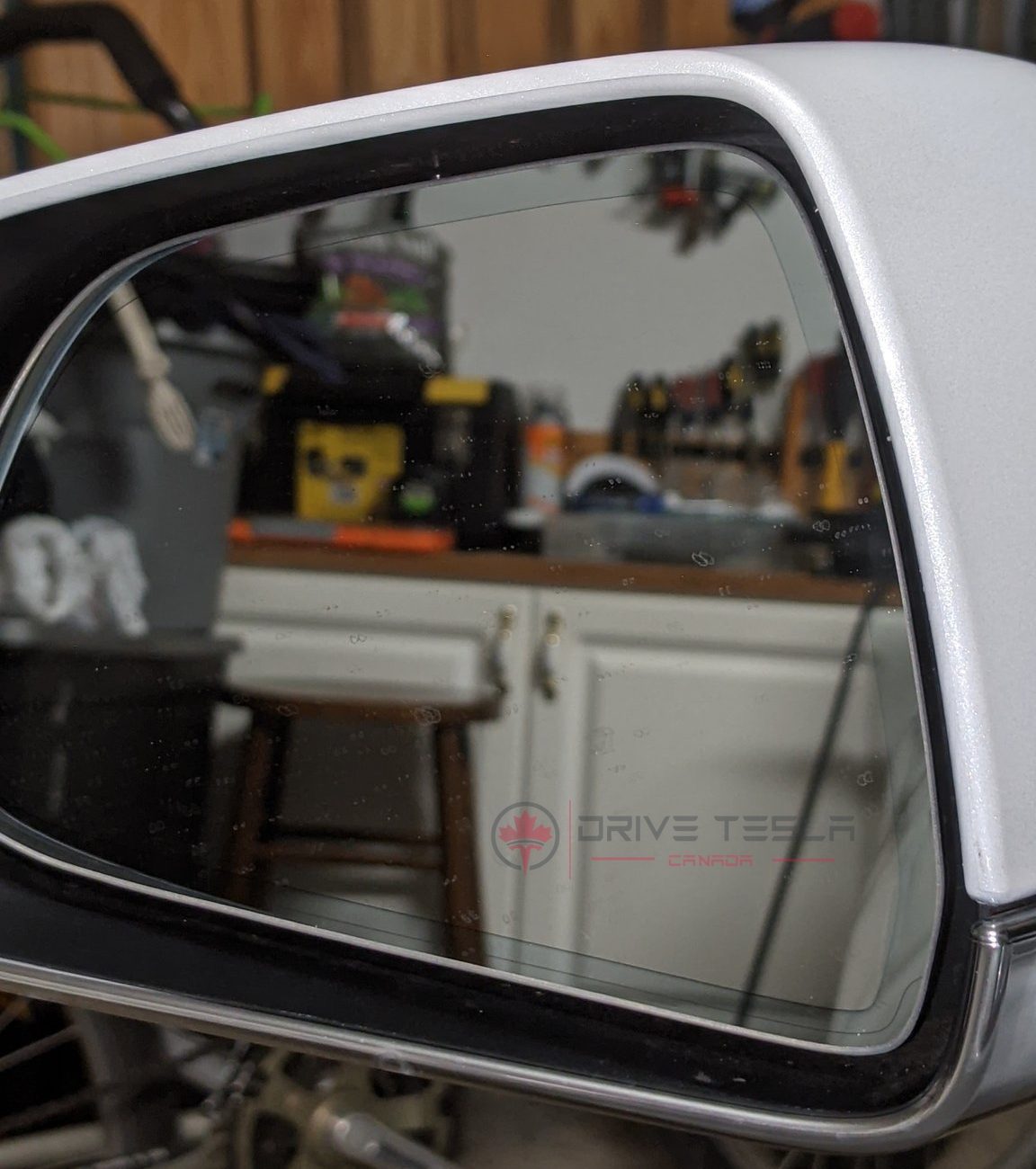 A Drive Tesla reader from Regina sent us this picture of his Long Range Model 3 built in September 2020. In it you can clearly see the dark outline around the edge, signifying the feature has returned (click to enlarge). As a comparison, here is a picture of a “normal” side mirror on a Model 3 produced earlier this year.