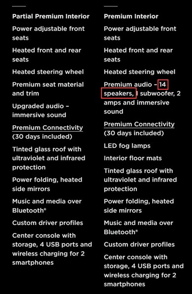 Tesla has now quietly changed the audio setup for the Premium Interior, reducing the number of speakers from 14 to 13.