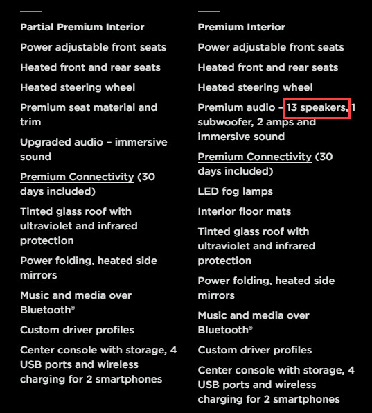There has been no change to the other components, with the page listed the Premium audio package as having “13 speakers, 1 subwoofer, 2 amps and immersive sound. (h/t: @tesla_adri)