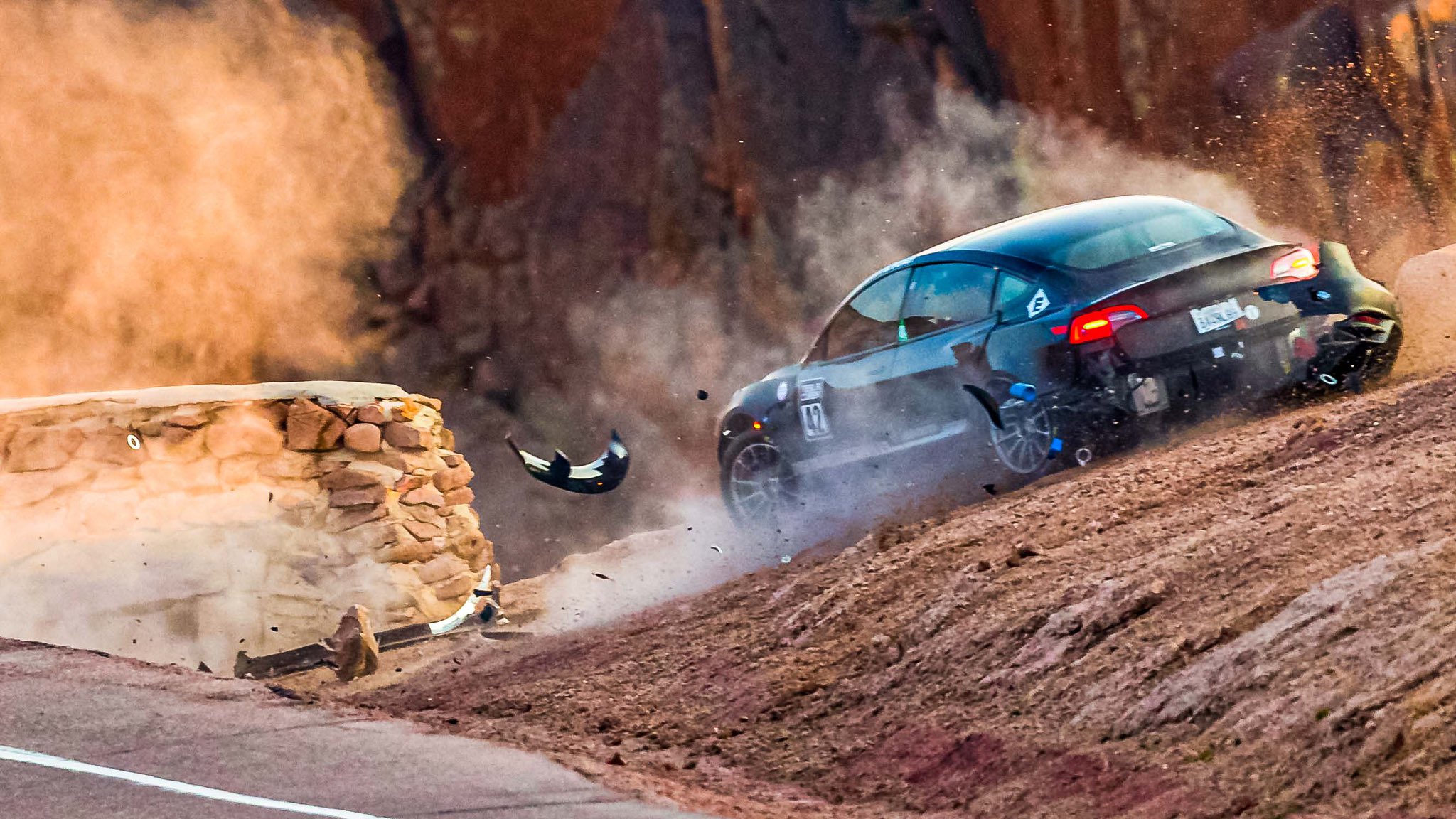 Unplugged Performance Model 3 crashes on day 2 of Pikes Peak International Hill Climb