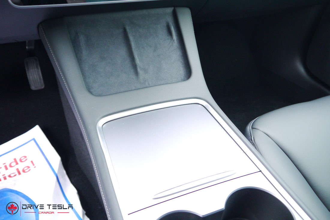 The operation of the new sliding door for the center console was very smooth. The amount of storage underneath has been slightly reduced because of the integrated wireless charger, but there is still plenty of room to store your junk valuables.