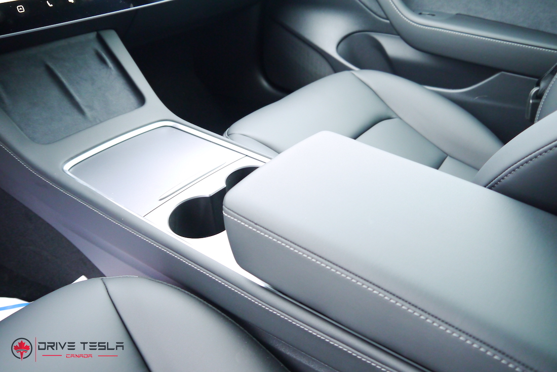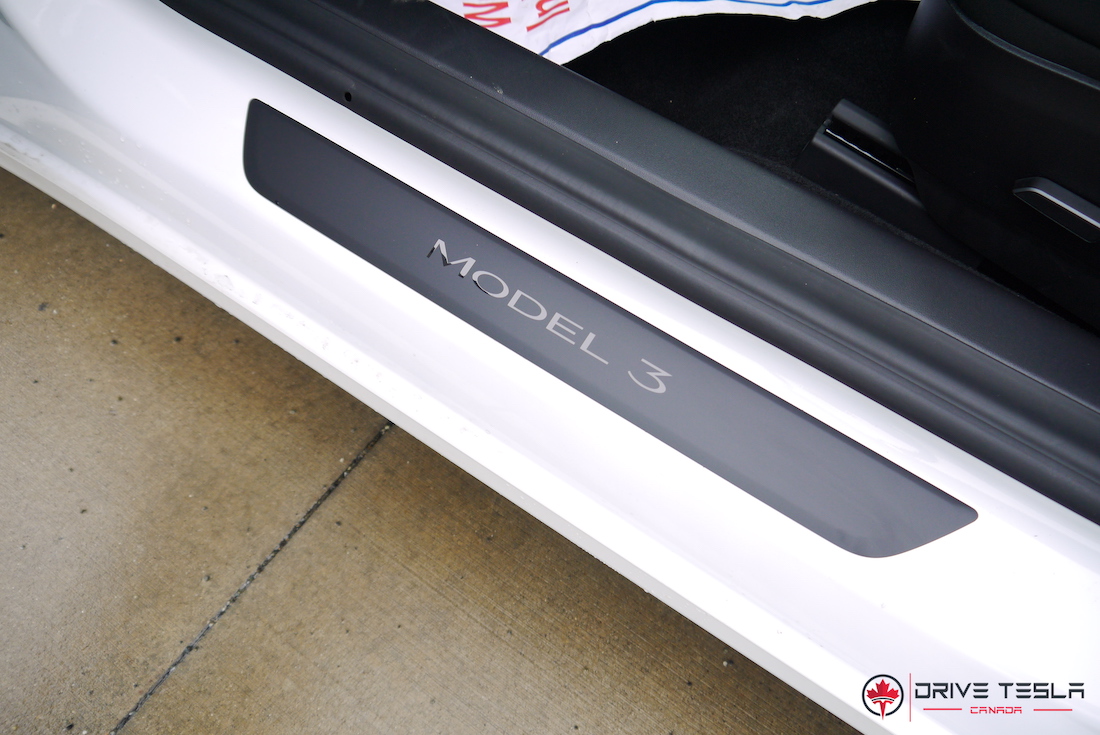 Another big change to the Model 3 is the new factory black trim, as well as upgrades to the finishes of the interior. The seat controls now have a more refined graphite finish and the door exit buttons and black door sill plates from the Model Y are now included.