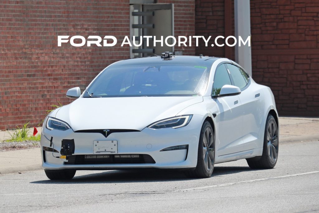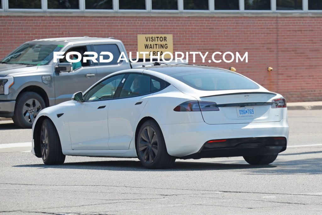 The Model S Plaid that Ford is benchmarking does appear to be an older model as it does not have the new headlights and has the Plaid badging.