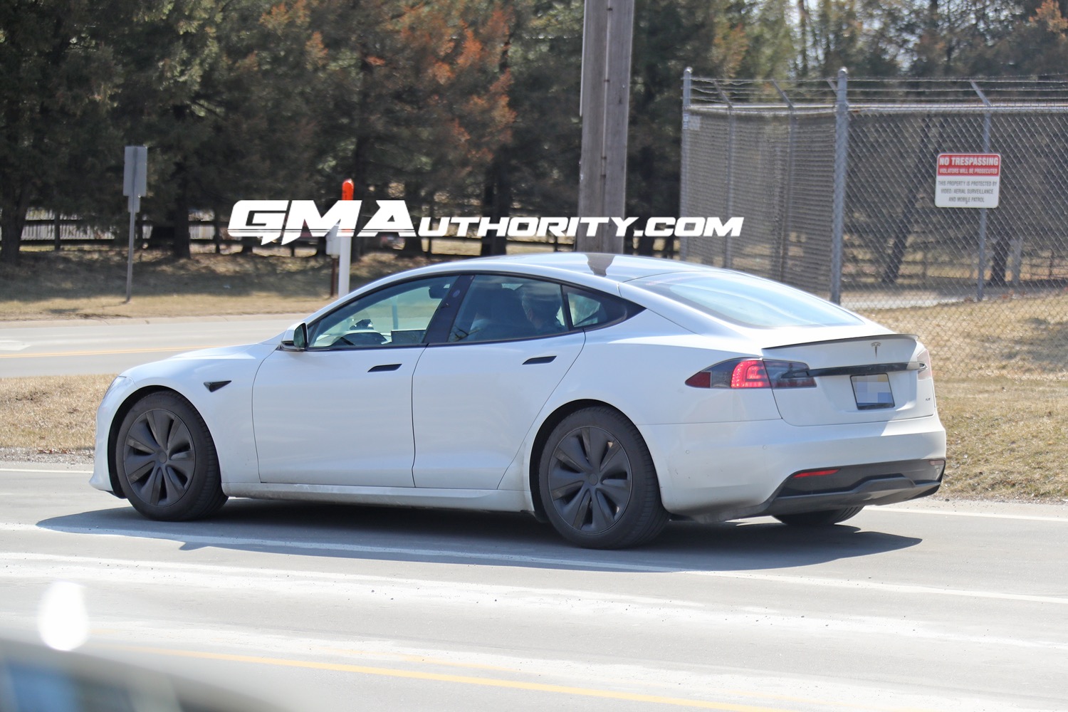 The white Model S Plaid was recently spotted by GM Authority, which captured images of it near one of their testing facilities in Michigan.