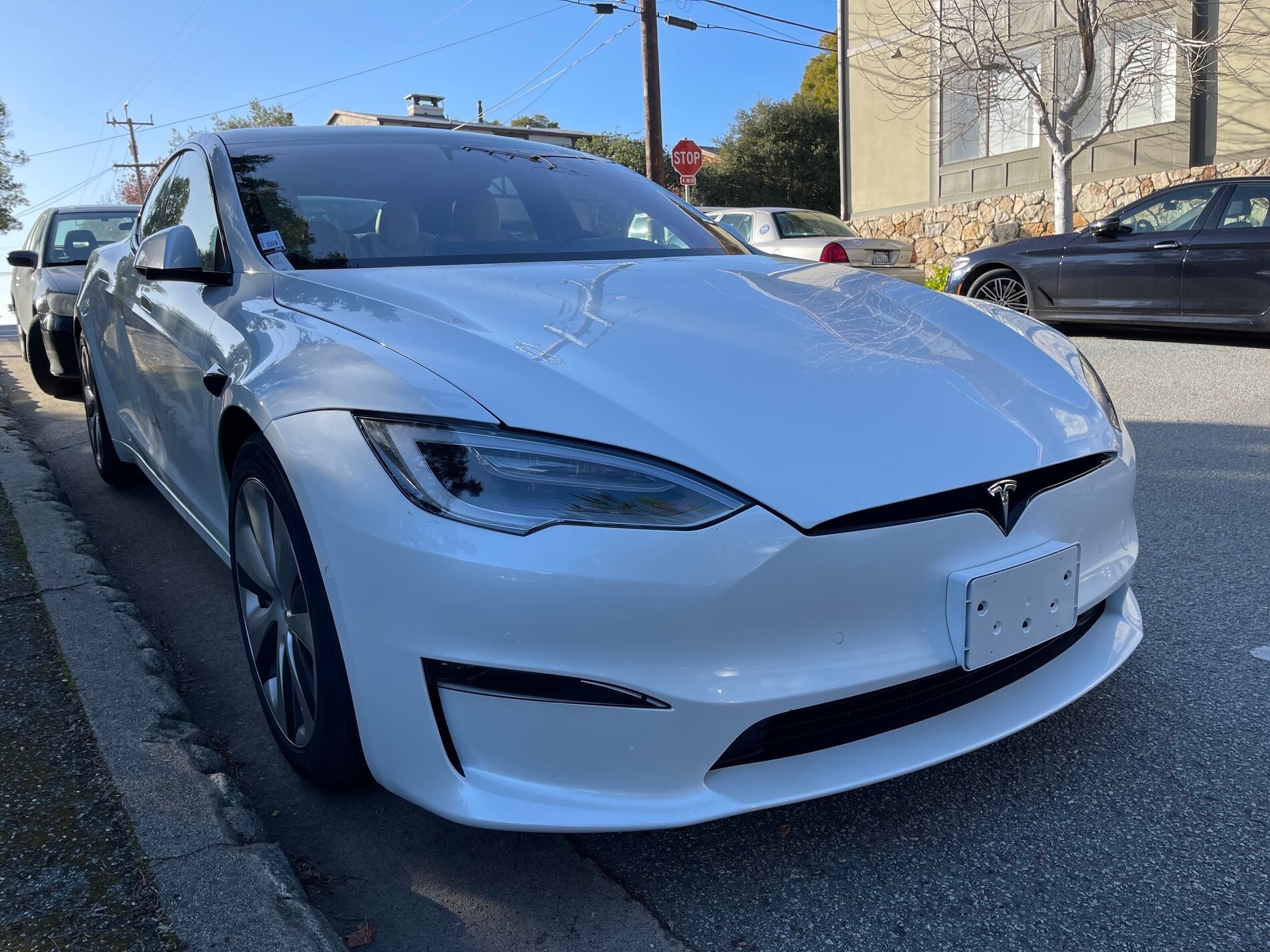 Another white refresh Model S was seen earlier this week just a few miles from the factory in Fremont. That test vehicle was equipped with entirely different wheels, leading some to believe it could be a Plaid+, which isn’t expected until later this year.