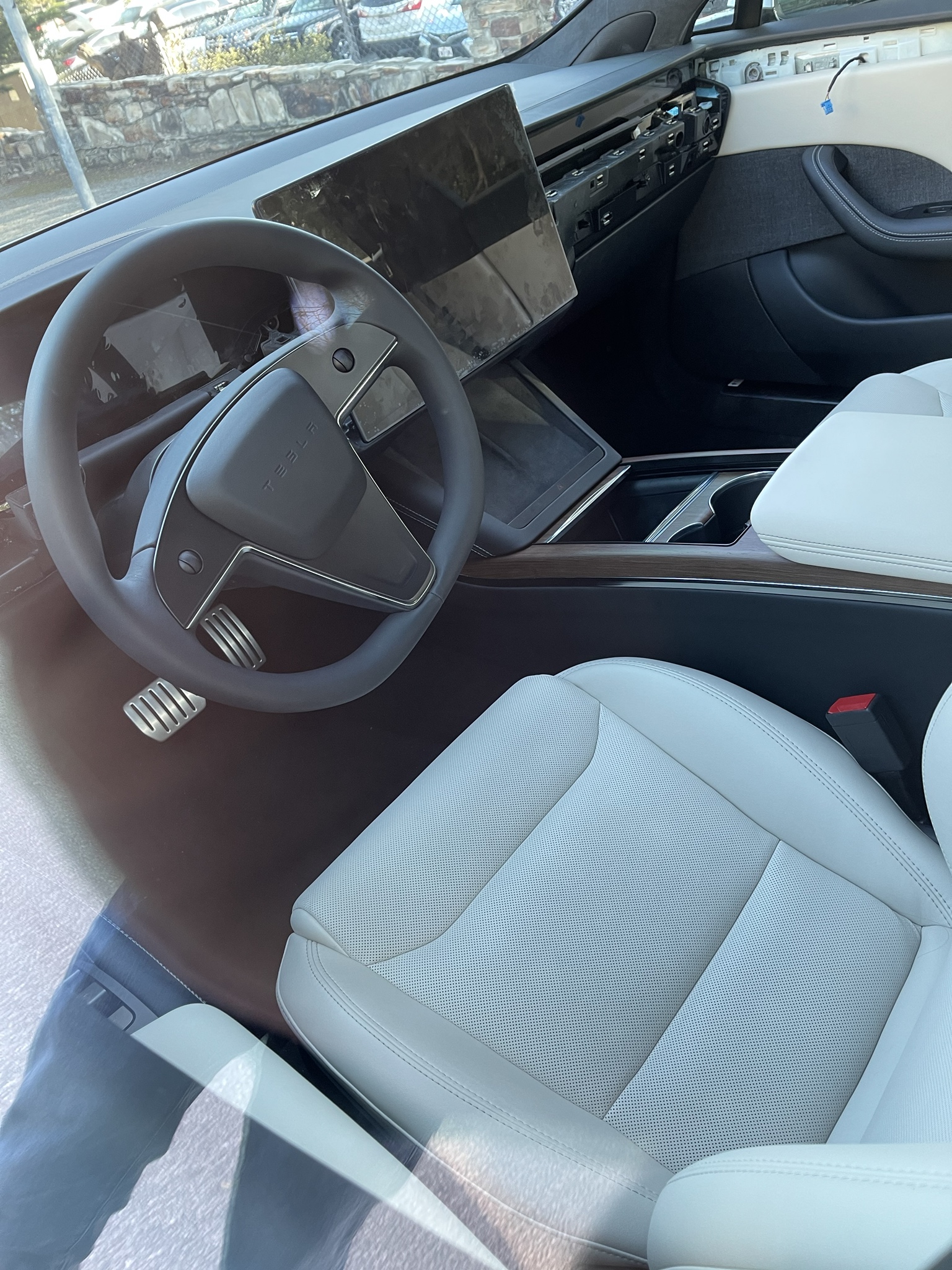 The Plaid Model S was found parked on the side of the road, allowing Nick George to take an up-close photo of the interior.